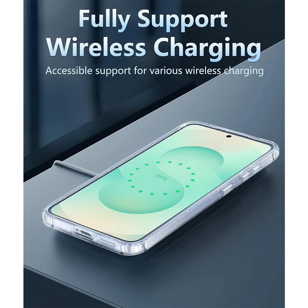 Anti-Yellowing Glitter Military Case – Clear Protective Cover for Galaxy S25/S24/S23 Series