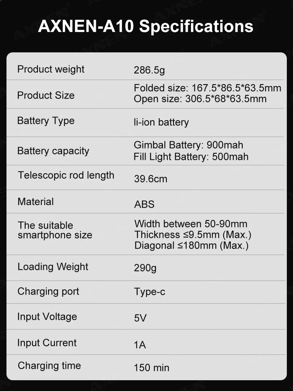 AXNEN A10 Smartphone Gimbal – Stabilizer with Fill Light, Tripod & Remote