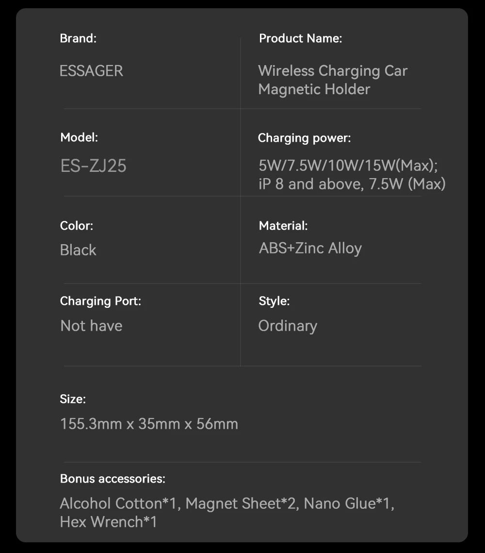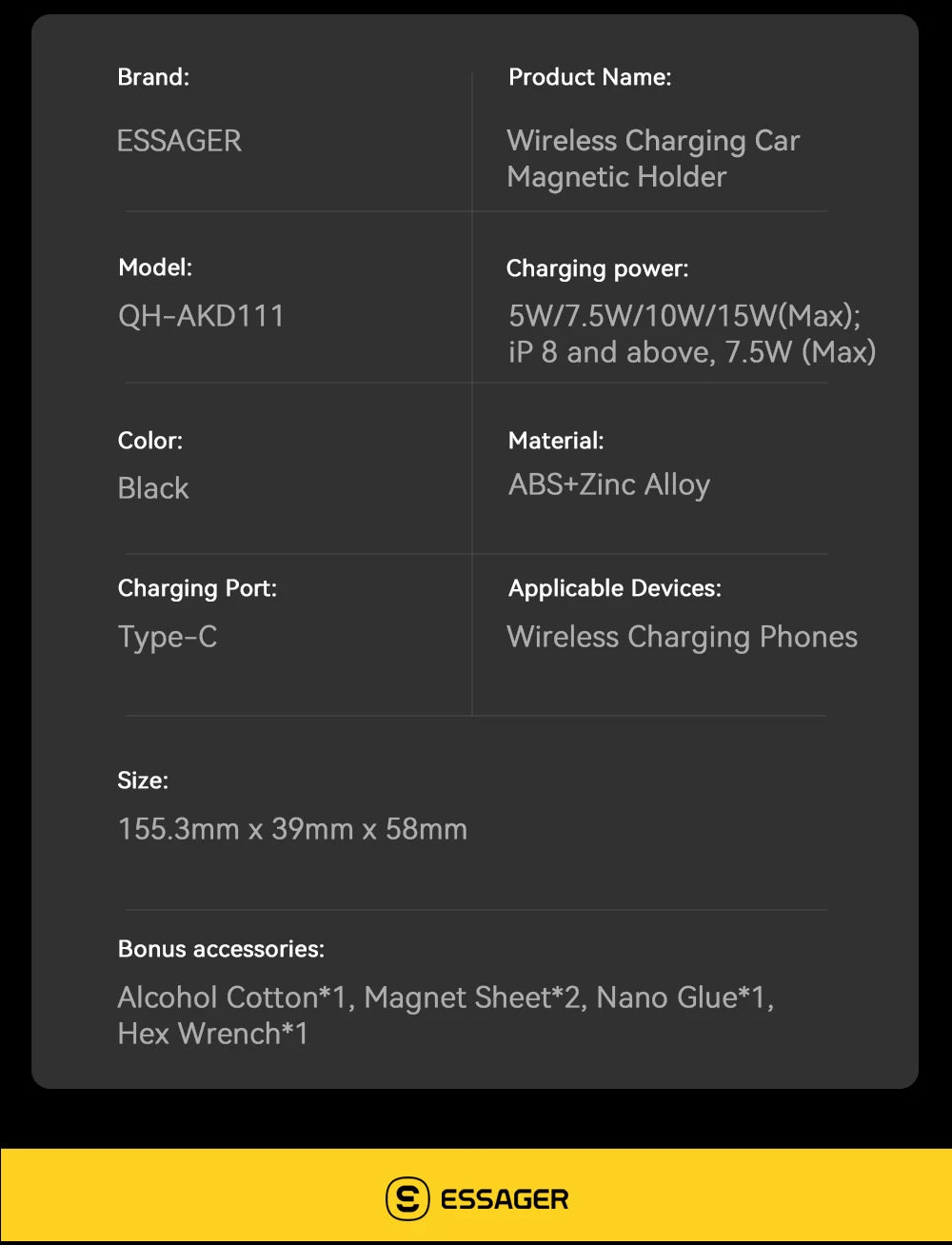 Essager Magnetic Car Wireless Charger – 15W Fast Charging Mount for MagSafe iPhone