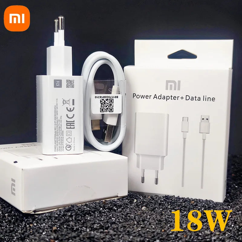 Original Xiaomi 18W Quick Charger – EU Adapter + 3A Type-C Cable for Redmi & Mi Series