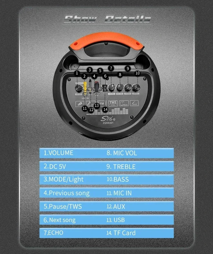 Bluetooth/with radio/with MIC/with remote control (but the main board does not need to install a receiver)+with display (but the main board does not need to install a display)/with AUX/USB/TF card/MIC, DC-5V charging (Type-C charging stand+USB with 5V boost/with lithium battery protection/power amplifier boost/potentiometer volume, with wireless microphone function+8691 dual power amplifier+treble/with colorful light/colorful light controlled by MODE, box to box function